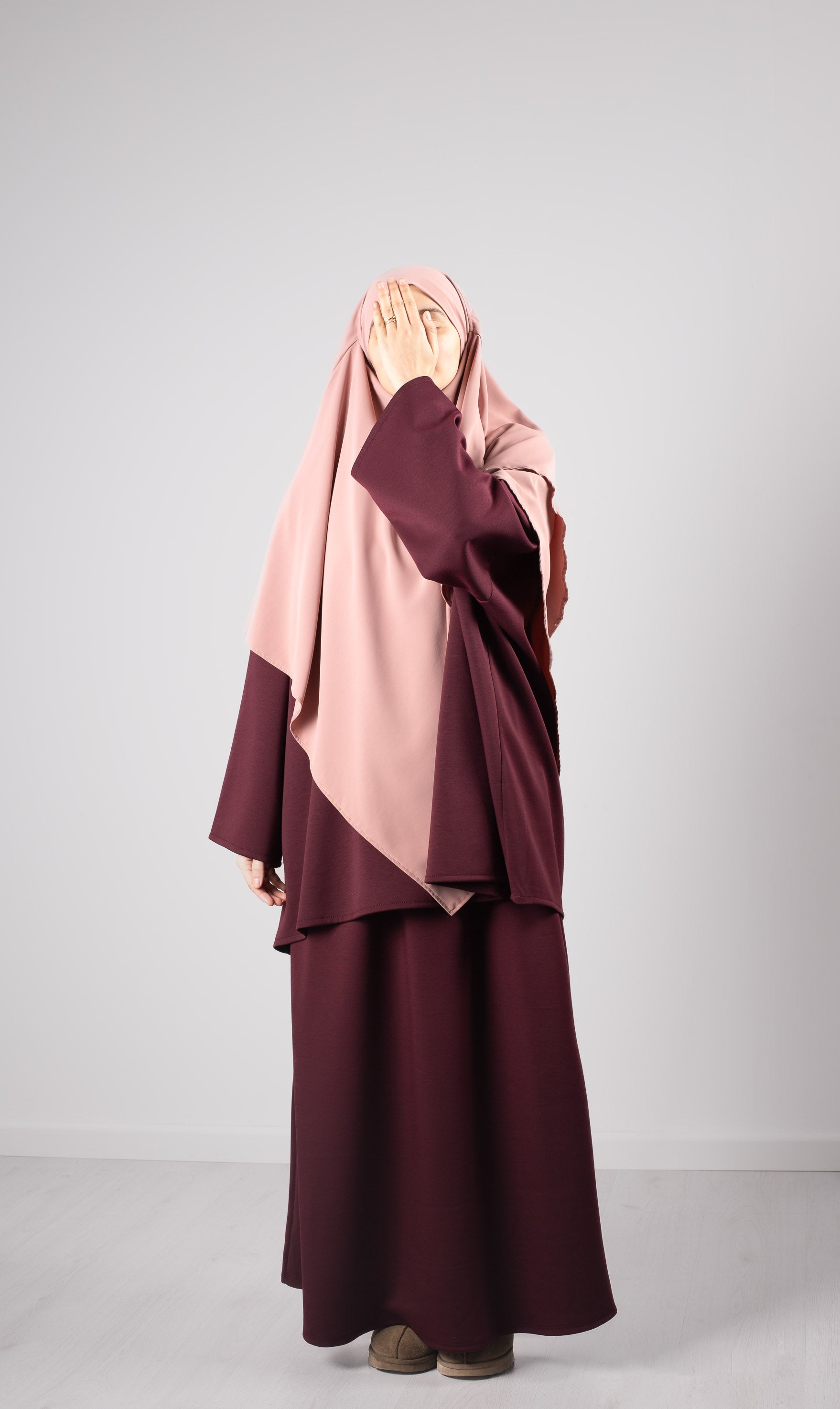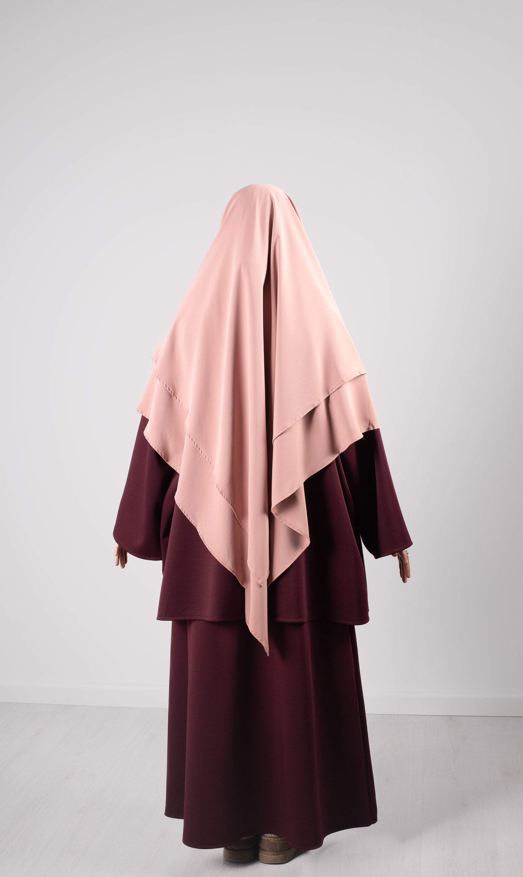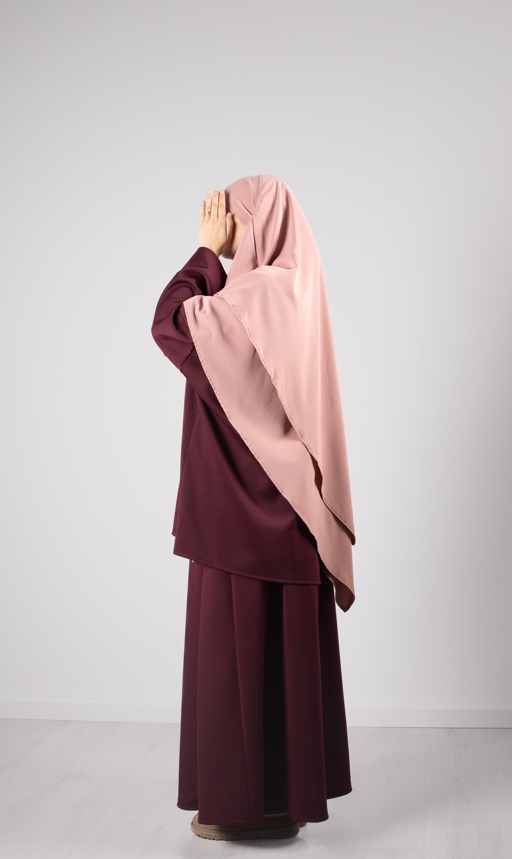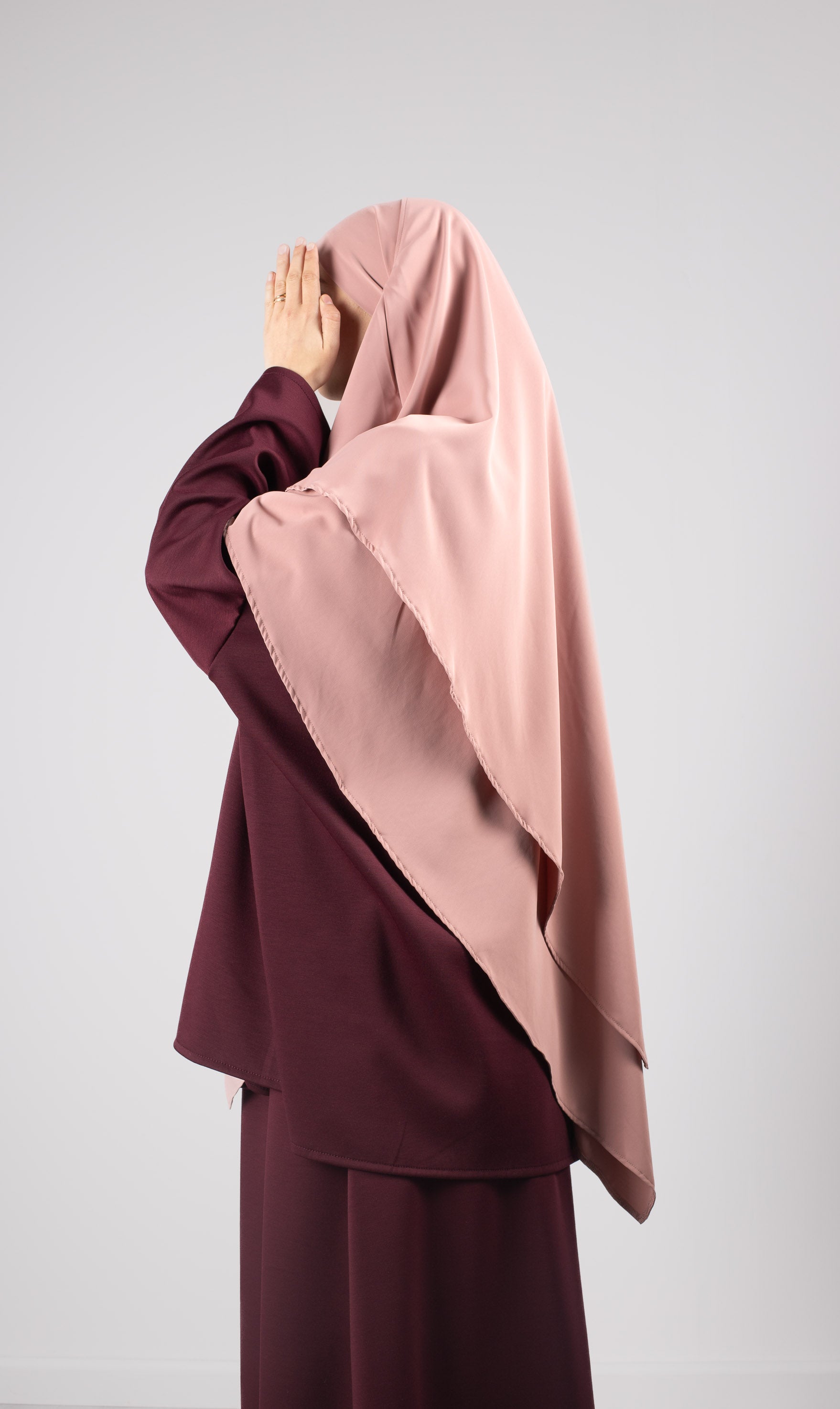 The Double Diamond khimar is characterized by ending in a point at both the front and back. This gives a lot of freedom of movement while wearing. The MEDINI SILK fabric feels silky soft. The fabric does not wrinkle easily and is not translucent. The Khimar can also be worn as a niqab.