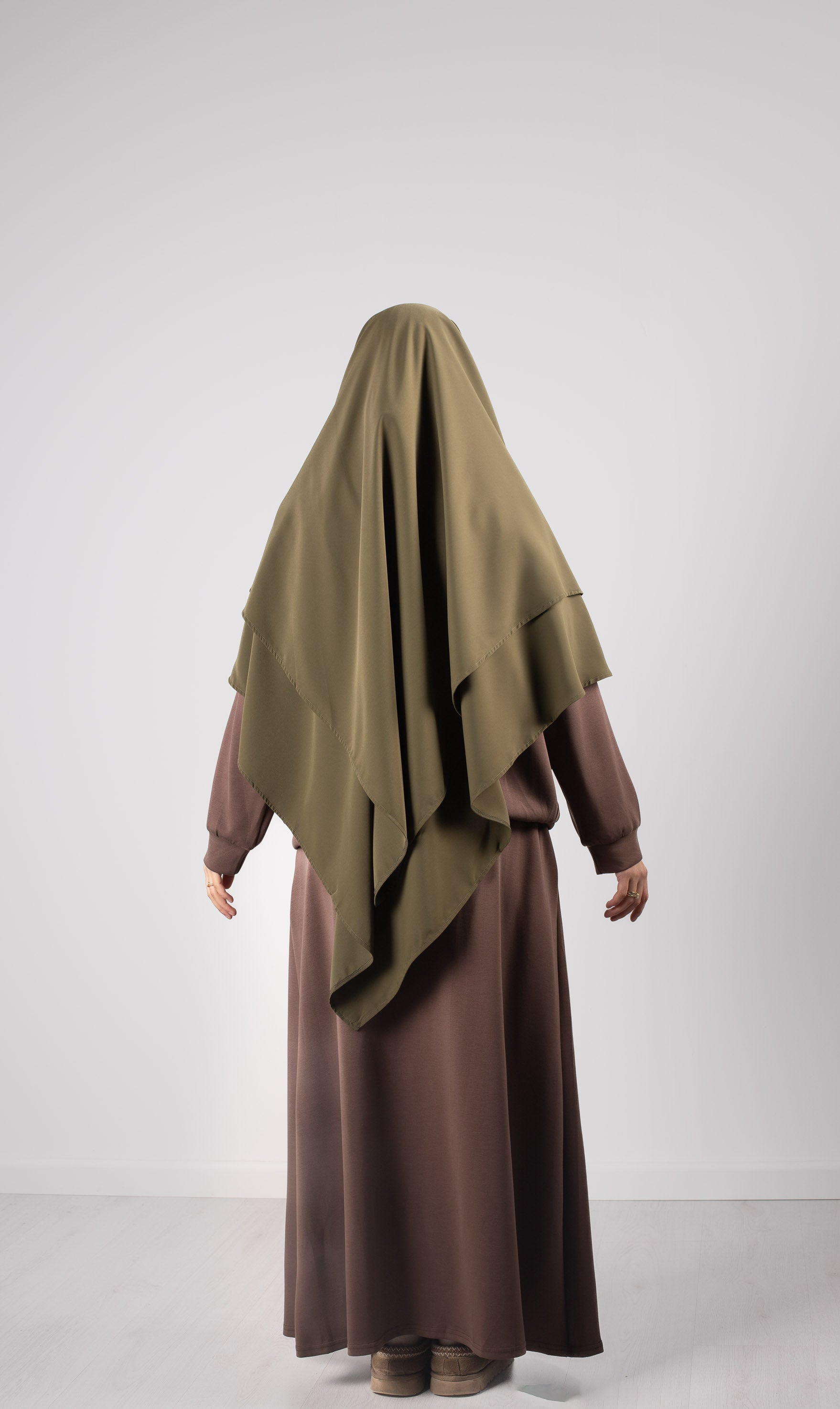 The Double Diamond khimar is characterized by ending in a point at both the front and back. This gives a lot of freedom of movement while wearing. The MEDINI SILK fabric feels silky soft. The fabric does not wrinkle easily and is not translucent. The Khimar can also be worn as a niqab.